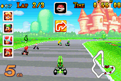 The maps in Mario Kart: Super Circuit is quite diverse and creative. It is designed to be quite simple, with few obstacles to dodge but there are quite a lot of kink roads to challenging the player’s racing skills. Compared to its predecessors, this game is considered as a worthwhile upgrade, improved both in terms of graphics and race diversity. Although a few have been added, it also includes familiar scenes in the Mario action series such as beautiful castle, beach, or Cheese Land.