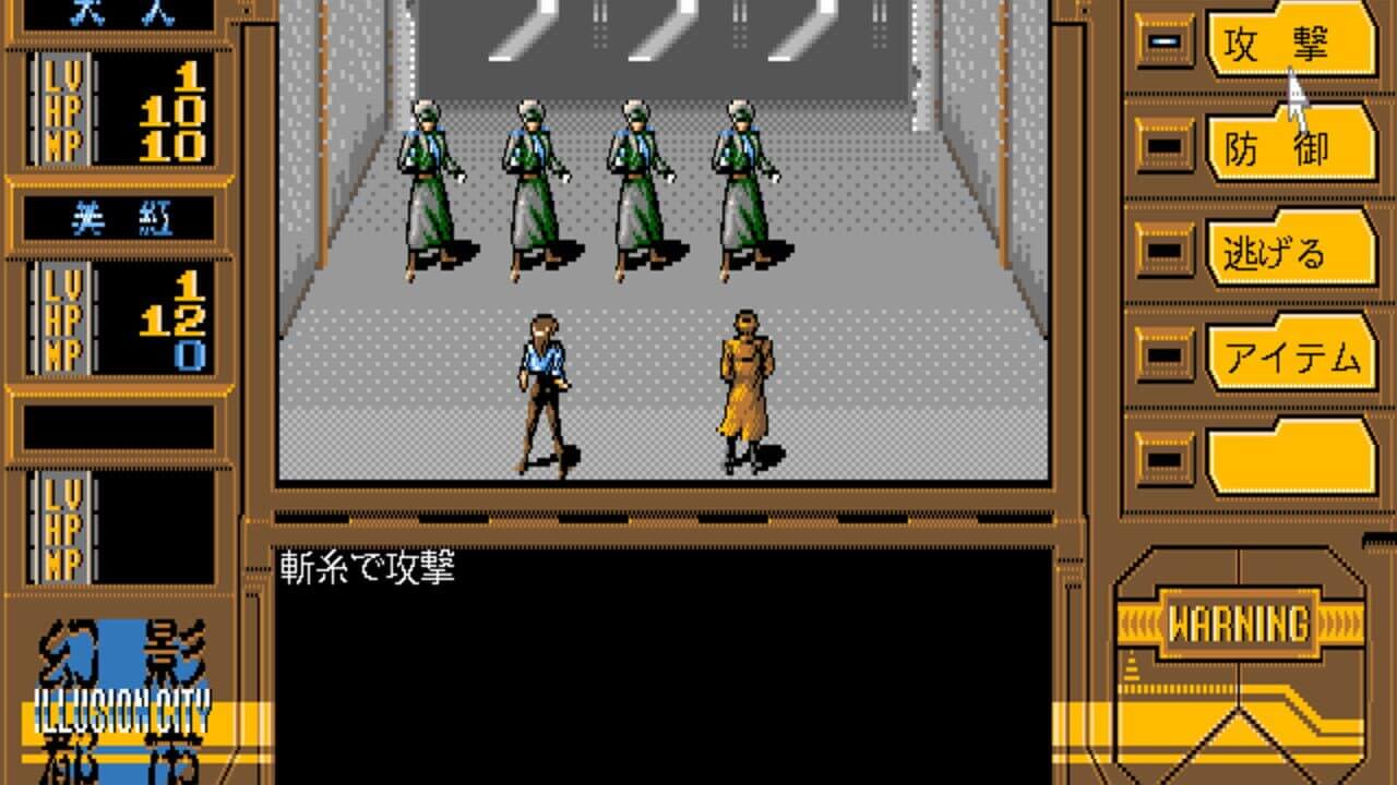 Illusion City is a Japanese-style role-playing game with several distinguishing characteristics. Unlike most games of the genre, it has no overworld, and takes place entirely in a vast city divided into several districts. The player advances the story by exploring the city, talking to non-playable characters, gathering information, receiving missions, and eventually heading into large, complex hostile areas. There are no random battles in the game; all enemies are visibly moving on the field, and many of them can be avoided.
