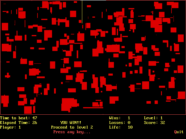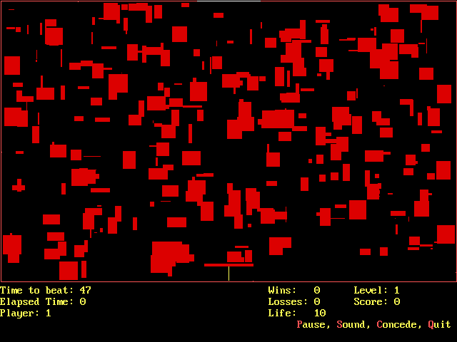 The player controls a snake at the bottom of the screen, attempting to reach a goal at the top of the screen within a time limit. This snake can travel in one direction at a time, and must continue uninterrupted until it encounters an obstacle, at which point it has the option of changing its direction. Fortunately, the screen is randomly littered with scattered red blocks, and gameplay largely consists of plotting a continuous course along the contours of these blocks. Subsequent (infinite) levels (with a bonus challenge round every 10) incorporate differently-coloured blocks, which modify gameplay in various ways — altering the time remaining positively or negatively, teleporting the snake to a random location, becoming a necessary checkpoint en route to the gate, or just terminating the snake. (Typically the snake will die only upon reaching the time limit or being trapped in an enclosed space by its own tail, which gets longer (unlike the goal, which gets shorter) and more in the way with every level successfully completed.)