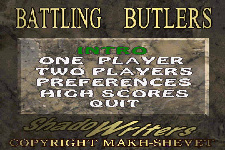 Battling Butlers is a one-on-one fighting game, featuring five different playable objects as fighters.