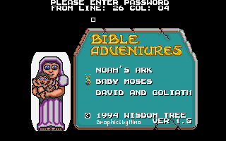 Bible Adventures contains three different side scrolling platform games, each with a different bible theme.