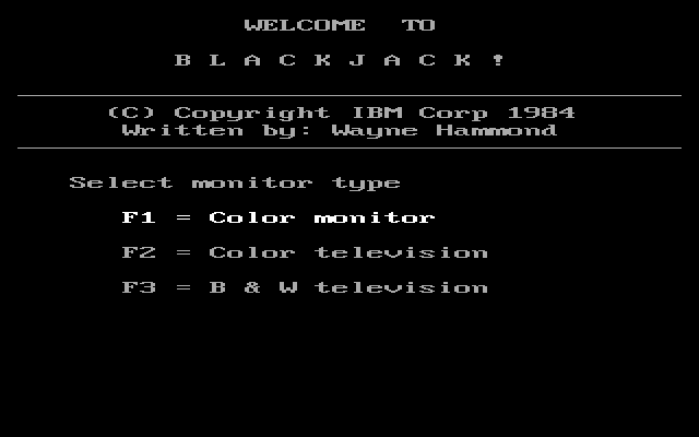 Blackjack is a computerized version of the casino card game. The object of the game is to get a higher count than the dealer without going over 21. You can choose an amount of money to start with, and place a bet for each hand until you either run out of money or decide to quit while ahead! The game uses 80 column text mode with ASCII characters to represent the cards.