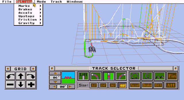 The goal of “Coaster” is quite simply to build a roller coaster! After designing your coaster you have it ridden by a panel of experts which assign it a score. You can also ride it yourself.