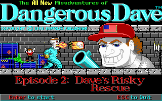 Dangerous Dave is back in this gory and macabre side-scrolling action game. Battle wolves and other man-killing creatures with your shotgun attempting to rescue Dave’s little brother Delbert from the castle of the evil Dr. Nemesis. There are eleven levels in the game and some more creatures than in the previous installments.