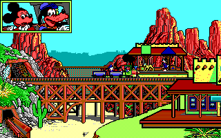 In Goofy’s Railway Express, Goofy and Mickey are railroad conductors helping children with colors and shapes. This is done by a series of screens for young children to start visually identifying shapes and color matching while the train crosses colorful landscapes.
