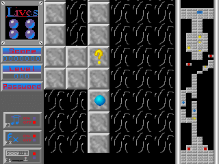 Jump! is an arcade game of guiding a permanently bouncing ball through a vertically scrolling field of obstacles. The ball always moves in a vertical direction (thus making it look like vertical scroller). Player can freely control the ball’s movement in a horizontal direction and affect the speed of vertical movement. Features of the field include holes which make the player lose a ball upon contact, arrows that hasten the ball or reverse vertical movement, black holes that work as teleporters, walls that block ball movement, switches that make some walls disappear, etc.