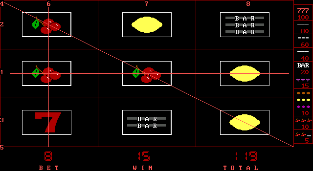 The game SLOT-8 is a simulation of an 8-way pay slot gambling machine.