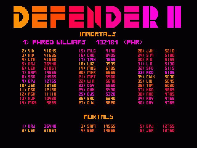 Williams Arcade Classics is a compilation that includes the following games: Defender Defender II Joust Robotron: 2084 Sinistar The PC, PlayStation, and Dreamcast versions also contain Bubbles. The PC and Playstation versions contain FMV supplements, including interviews with the original programmers.