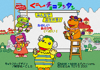 Gu~chokorantan Minna de Oekaki ! Tanoshii Asobi mo ippai! (ぐ~チョコランタン みんなでおえかき!たのしいあそびもいっぱい!) is a Japanese-only Sega Pico game based on the Gu~chokorantan segments from NHK’s Okaasan to Issho.