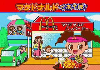 McDonald’s de Asobo! is a Sega Pico game released by Sega Toys in 1999. It is a simple restaurant management simulator, which although is sponsored by the American fast-food chain McDonald’s, was only released in Japan.