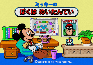 Mickey no Boku wa Meitantei (ミッキーのぼくはめいたんてい) is a Japanese-only Sega Pico game starring Mickey Mouse.