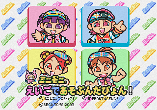 MiniMoni. Eigo de Asobundapyon! (ミニモニ。えいごであそぶんだぴょん!) is a Japanese-only Sega Pico game with cartoon depictions of Japanese band Minimoni.