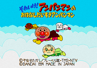 Soreike! Anpanman no o-Hanashi Daisuki Anpanman (それいけ!アンパンマンのおはなしだいすきアンパンマン) is a Sega Pico game based on the Anpanman franchise.