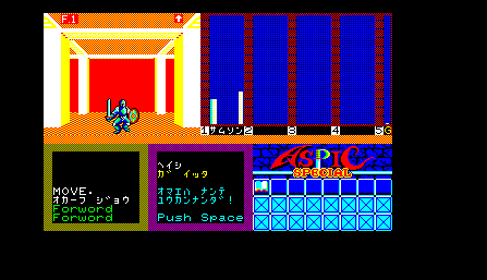 Aspic is an Action Role Playing game utilizing a first person perspective in dungeons. Battles occur in real time on a separate arena similar to Zelda II’s map encounters. Players can recruit extra warriors and pick which warrior will engage in combat. The game is a sequel to Xtalsoft’s Lizard and is notorious for its dark ending which doesn’t end in the player’s favor.