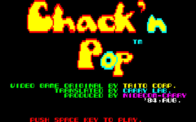 Chack’n Pop is considered a predecessor of Bubble Bobble. It is a platform game where a roundish yellow creature, named Chack’n, must fight against Monstas and Mightas in order to reclaim hearts that were stolen during a romantic encounter with Miss Chack’n.