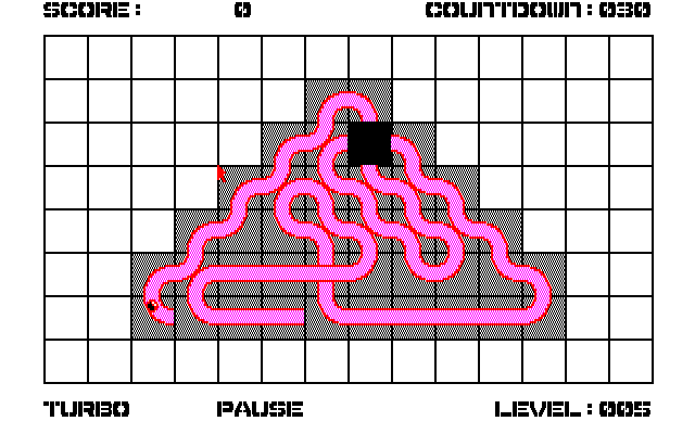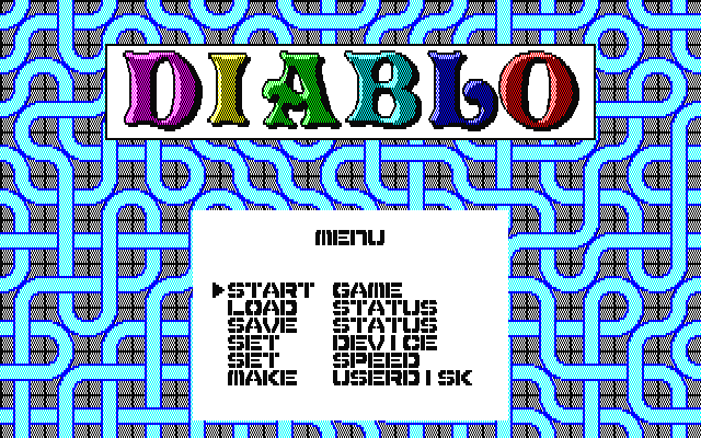 Diablo is a puzzle game with similarities to sliding block puzzles. Each level is composed of a number of tiles and every one has a part of a pipe (straight or angular) on it – except one which is just a black hole. In one tile a red ball starts rolling and all tiles it rolls through become blank.