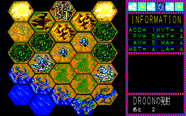 Dione is a turn-based sci-fi strategy game where the player controls the mobile base “Dione” that can carry aircraft, amphibious craft and mechas. The player can choose to let the computer pick the units for him or choose by their own. The units all have different costs though.