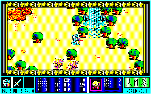 Gandhara refers to the capital of the Kushan Empire, (today’s Pakistan and Afghanistan), founded in 1st century BC, whose rulers were Buddhists; it was one of the most flourishing Buddhist states in history. The story of the game, however, is based on pure mythology, featuring Buddhist deities in their distinctly Japanese incarnations. The protagonist is contacted by the bodhisattva Akasagarbha (known as Kokūzō in Japan, from the Chinese Xukongzang), who tells him that the world is in danger: the king of demons is trying to locate and neutralize the holy Ashes of Buddha, whose power protects the eight worlds. The hero’s task is to find the ashes and defeat whomever the king of demons might send to stop him.
