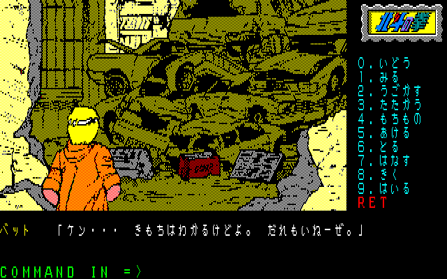 Hokuto no Ken is based on the manga series Fist of the North Star. The story focuses on Kenshiro, a young martial artist proficient in the deadly technique known as Hokuto Shinken, which he uses to protect innocents against malevolent fighters populating a post-apocalyptic world. The game’s plot follows the initial story arc of the manga, as Kenshiro and Bat are trying to locate Kenshiro’s old rival Shin.