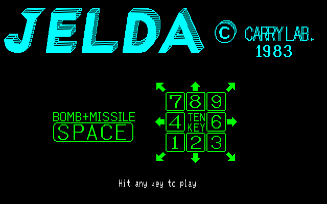Jelda is a third-person shooter with 3-D wireframe graphics. The player’s ship can attack with missiles and bombs, with gameplay similar to Xevious. Each enemy has a unique name and attack pattern. The enemy names are TESRA, ABILUS, MOZAM, JEMIL DER, PIRAM, HEXA, SPARDA, TOBLA, WALKER, TOWER, TORIPIRAM and PIMEL.