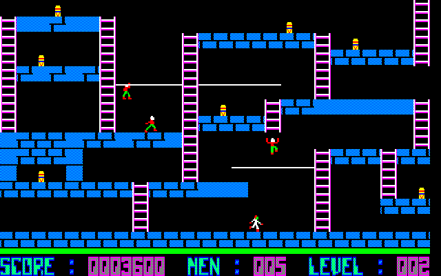 The Bungeling Empire has stolen a huge cache of gold from its rightful owners, and your mission is to infiltrate its treasury and recapture it. This entails progressing through 150 screens of platforms, ladders and ropes.