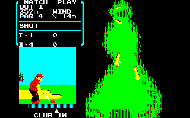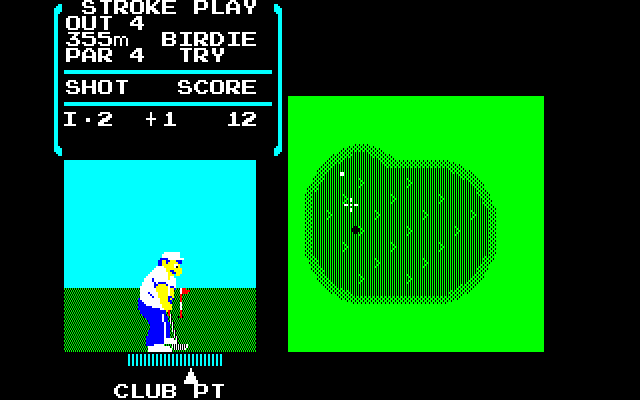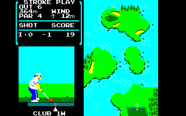 Nintendo Golf features two challenging 18 hole courses where players are able to play a round of golf, and allows players to choose a club, adjust stance and control the swing. The game features three alternating views; an overhead long-range view of the entire hole, an overhead medium-range view from the ball’s current location, and an overhead close-range view of the green.