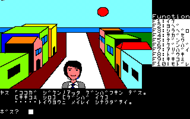 Yuji Horii’s second published game (after Love Match Tennis), Portopia Renzoku Satsujin Jiken (Portopia Serial Murder Case) is a first-person murder mystery text adventure, which allows players to input commands by selecting them from a verb list and searching onscreen graphics for hot spots.