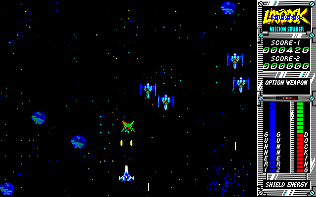A shoot ’em up game in the Laydock series that fits in perfectly between Laydock (Laydock 1) and Laydock 2. It’s again a game that can be played by two players though a single player game is also a possibility. If played by two players they can cooperate by docking the jets together, docked side-by-side or end-to-end for greater fire and fighting power. When docked one player is the pilot and the other is the weapons officer.