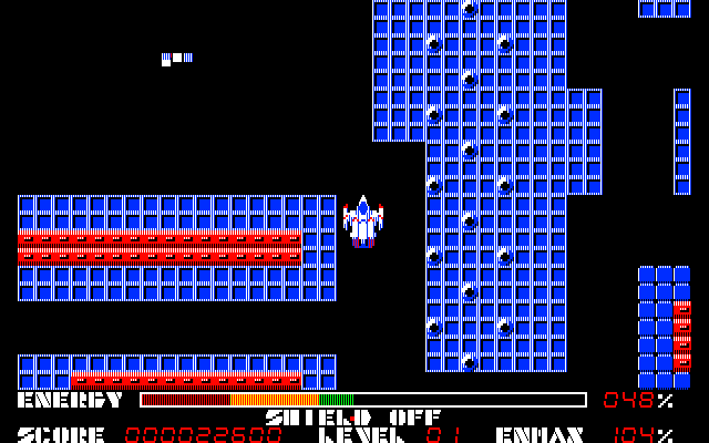 A platform shooter from Japan, Thexder offers many levels and diverse enemies that gradually increase in difficulty. You pilot a Battletech-style robot capable of switching from a mech into a jet at any time. Your weapon auto-aims, but uses up a fixed amount of rechargeable energy; if you run out of this energy, you’ll have to wait a few seconds before you can fire again. Your mech also contains a shield that can be activated to protect you from harm, but this lasts for a few seconds and uses up some of your life energy.