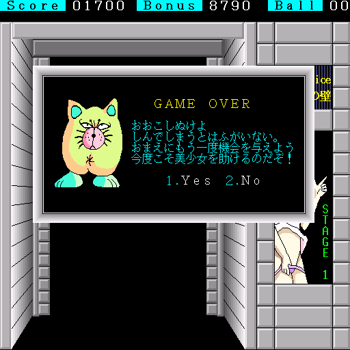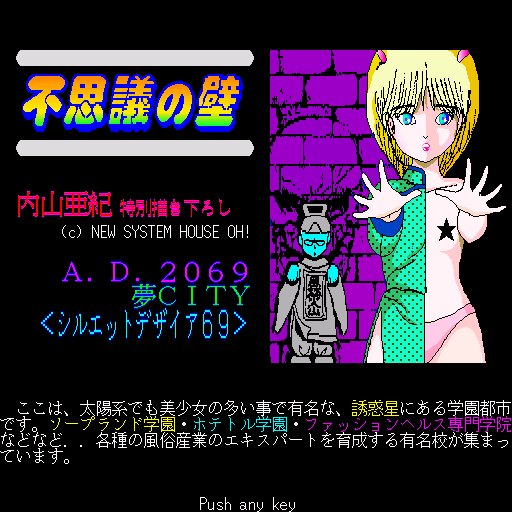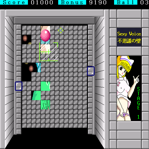 Eroge action game developed by New System House Oh! in 1988, where you hit certain parts of a wall to reveal a girl in an erotic pose.