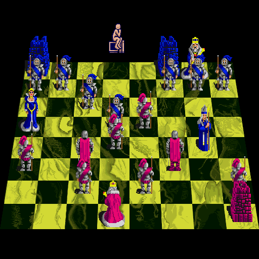 Battle Chess is a quite typical chess game, but it comes with a twist: all pieces are represented by small, realistic figures that walk around on the chessboard, and when one piece takes another, they both take part in an animated battle. There is a different animation for each permutation, depending on which pieces are capturing or being captured. You can also play in 2D without animation.