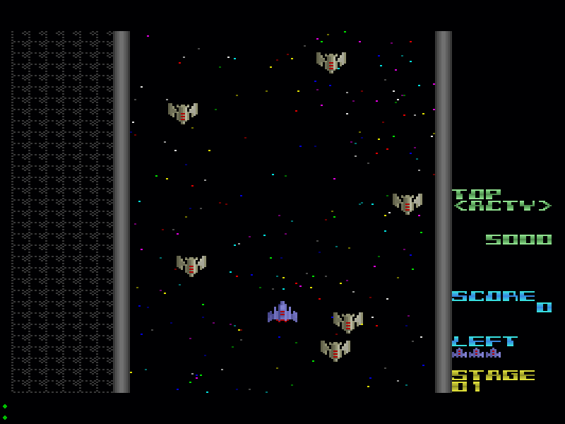 This community homebrew vertical space shooter is almost a perfect primer game for aspiring SHMUPS and Bullethell gamers. Starting with simple wave based shooting, adding some different enemy patterns, adding enemy bullets to be avoided, speeding the pace, adding some surprises like enemies from the rear and then moving on to a new, faster set of enemies with some new patterns. It contains 16 stages with incredible hardcore difficulty !