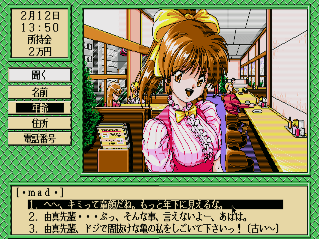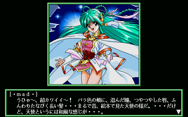 In this game, the player assumes the role of an ordinary Japanese young man who works in a restaurant. One day he comes home and finds seven strange creatures sitting at his table and discussing something you have no clue about. But before you decide to throw the uninvited guests out of your apartment, a beautiful green-haired woman appears. This is the goddess Swatty, and she has power over the Seven Lucky Gods, which the mysterious seven creatures turn out to be. Swatty feels pity for the lonely hero, and decides to help him to find a girlfriend.