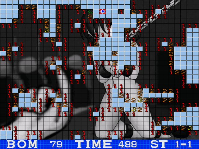 Minesweeper, but for adults. On a grid, the player clicks in a cell and hopes that it is not occupied with a mine. If it isn’t, that cell is filled with a number, which indicates how many mines there are in adjacent cells. Using logical thinking, looking at the relations between different number cells, the player can conclude which cells contain a mine and mark them as such. Once all cells are revealed, the player progresses to the next minefield. But this version comes with a very Japanese twist. How can we make minesweeper more interesting? Well, we can have the unsolved minesweeper grid pieces cover erotic fetish pictures pictures. Oh, you!
