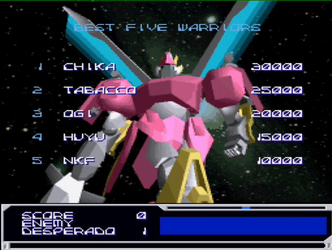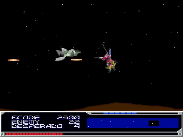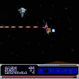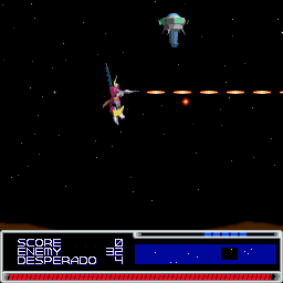 Control a Battle Mech and clear the skies of Tarai of enemy Bester ships, find them on the tactical display, get a bonus for the amount of energy you have left once you’ve cleared the sector you are in.