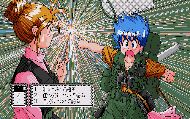 DOR Special Edition ’93 is neither a compilation, re-release, nor a remake; it is an independent entry in the DOR series. Typically for the series, the game consists of three completely unrelated scenarios. They can be accessed from the initial game “hub”, which is viewed from a top-down perspective and allows the player to control the sexy demon Akuma, the series’ mascot, as she runs around a small town, visiting houses that lead to the game’s features: playing the scenarios, viewing the pictures, getting acquainted with the developers, etc.