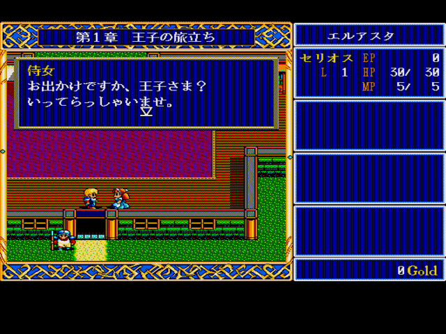Dragon Slayer: The Legend of Heroes tells the story of a young prince named Selios. One day his old teacher Raiyas sends him to a nearby cave to retrieve a magic weapon. When the prince returns, he finds the house attacked by monsters. Raiyas tells him to seek help in the castle of a baron, whose country has always been allies with theirs for a long time. However, the baron betrays Selios’ trust and imprisons him. The young prince manages to escape, but without the possibility to return he has no choice but to wander through the land, trying to find trustworthy companions who would help him to save his country.