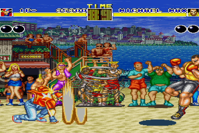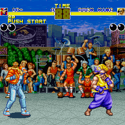 Southtown City plays host to the King of Fighters Tournament. Andy & Terry Bogard take part in the tournament cause winning the tournament is the only way they can defeat Geese Howard. Geese Howard controls Southtown City and killed their father several years ago. Also taking part is Joe Higashi, a Japanese kickboxer. Select either Joe, Andy or Terry, visit several locations in Southtown City and win that tournament!