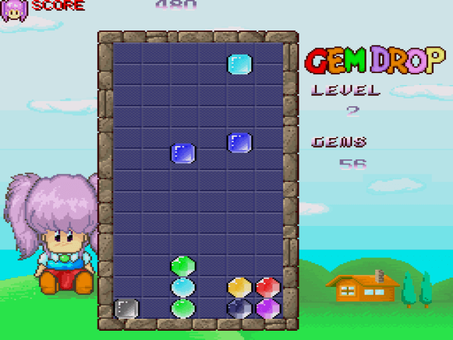 Gem Drop is a fast-paced puzzle game. The goal is to match gems and clear all gems on the screen.