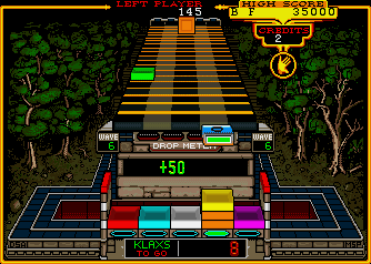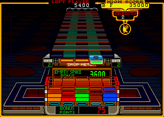 An action/puzzle game, the object is to catch assorted color falling tiles and create rows, columns, or diagonals of a single color. Each level requires a different pattern to be made, and the tiles fall faster, more at a time, and in an increasing number of colors as the game progresses.