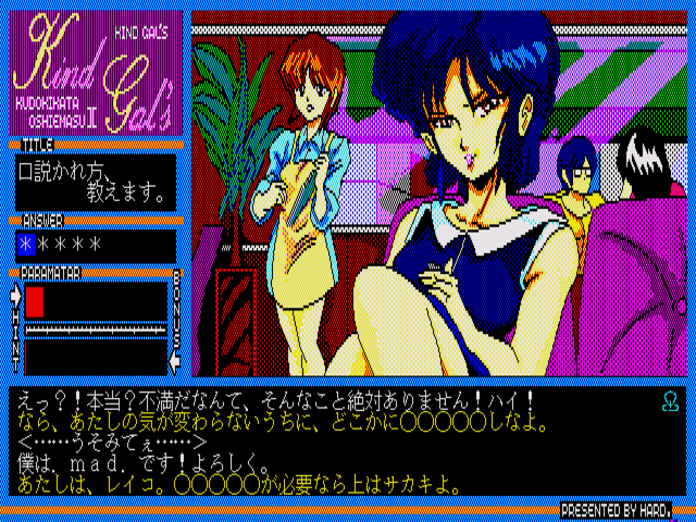 Kudokikata Oshiemasu Part II: Kind Gals is an Adventure game, developed and published by Hard, which was released in Japan in 1987.