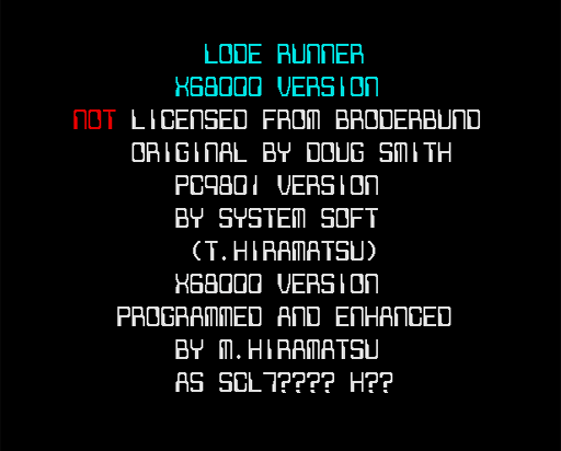 A homebrewDoujin conversion of the action puzzle platformer classic based on the PC9801 version, the PC9801 version was released by System Soft.
