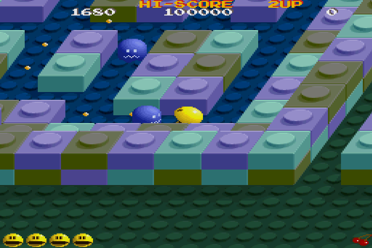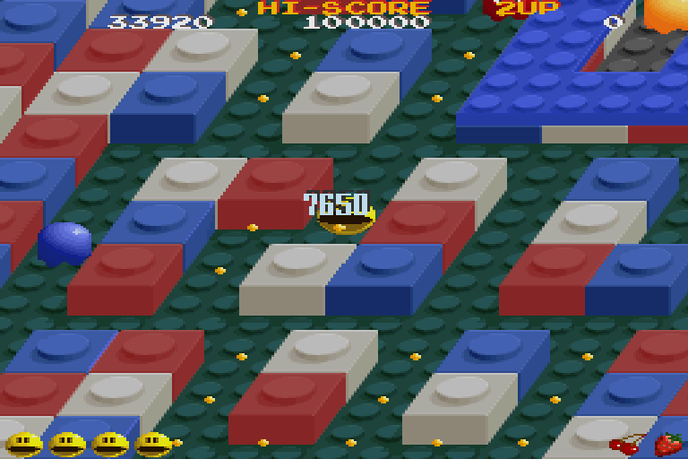 Pac-Mania is a variation on the game Pac-Man. You need to guide Pac-Man around a maze and eat all of the dots on the board in order to proceed on to the next round. Numerous, multi-colored ghosts also roam the maze trying to stop you. If you eat one of the power pellets in the maze, the ghosts will temporarily turn blue and run from you. Pac-Man can earn bonus points by eating the ghosts when they are in this state. The maze is now shown in isometric perspective and is larger than screen which will scroll to follow the action. To help get out of tight spots, Pac-Man now has the ability to jump. But be careful, because some of the ghosts have learned this trick as well and you could end up in a mid air collision!