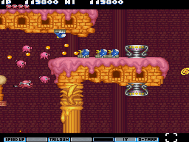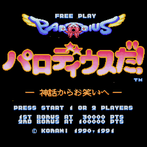 This is mostly the parody of Gradius (Nemesis on some systems), with some flavor from other shoot-em-ups, like Twinbee. The series is available on numerous platforms.