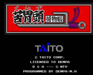 Quiz Torimonochou is a quiz arcade game that was released by Taito Corporation only in Japan. It is also the first game from the company where a knowledge of the three Japanese writing systems (Kanji, Hiragana, and Katakana) is essential for players who wish to succeed in it – and the players must help two Japanese lords, Heihachi (平八, red), and Nariyoshi (成吉, blue) finish seven rounds, by answering multiple-choice Japanese questions correctly. Each of the rounds is comprised of eighteen questions divided into four scenes – and the final scene for every round has four question categories for players to choose from. After completing a round, there is also a bonus scene (similar to Coconuts’ Amida) which gives the players a chance to earn a bonus onigiri.