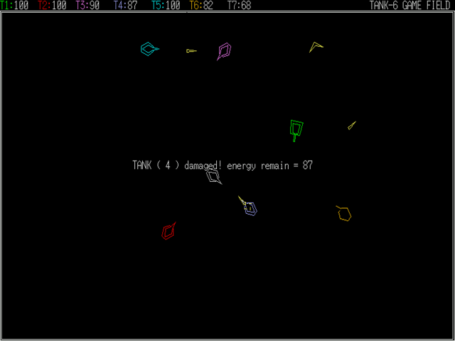 A top-down vector based tank themed arena shooter. Developed by TEC – EPT, and published by Doujin in 1991.
