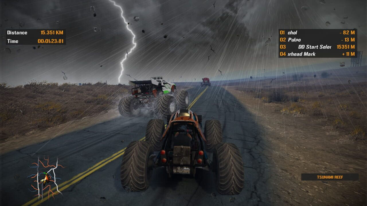 In an alternate present, vast swathes of America have become no-go areas as the devastating effects of global warming ravage the continent. Floods, storms, bush-fires, tornadoes and hurricanes have driven people from towns and cities into safe zones as extreme weather wreaks havoc, creating thousands of square miles of dangerous uninhabitable areas. People turn to renewable energy in the face of the destruction caused by global warming. But these danger zones become a playground for a new breed of racer. With a stockpile of fuel to be burned, adrenaline junkies head into the wilderness to compete against each other in spectacular races against themselves and the elements.