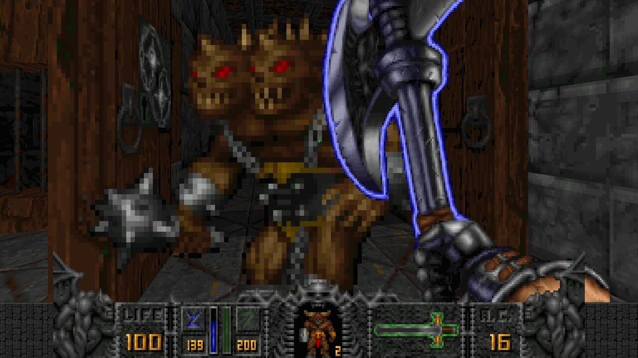 While you were battling the evil forces of D’Sparil, the other Serpent Riders were busy sowing the seeds of destruction in other dimensions. One such dimension is the decaying world where Hexen takes place. A world littered with the mangled corpses of nonbelievers and inhabited by the undead followers that executed them. Only three humans; a warrior, a mage and a cleric; have escaped the leaders’ vicious spell. Now these brave souls have sworn to crush the evil regime that threatens to destroy the world forever. Separated upon entering the mystical portal, the three are forced to attempt on their own what they had hoped to do together: find Korax’s stronghold, destroy him and restore order in the physical world.
