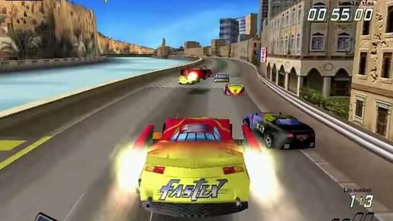 Based on the Fox cartoon series of the same name, NASCAR RACERS is a glimpse of what NASCAR will be like in the future. You can choose from five different cars, each with its own abilities that increase during the course of the race including one car that becomes invincible and another that gains a huge burst of speed. After you choose the correct car for your driving style, hit one of the 20 tracks available in the game. While you’re on the track, you need to keep an eye out for the oil slicks, water puddles, and random debris that will slow down or damage your car. If the car sustains too much damage, then the race is over, for you anyway. Luckily, there is a truck to refuel and repair your vehicle. Will you be able to cross the finish line in NASCAR RACERS?