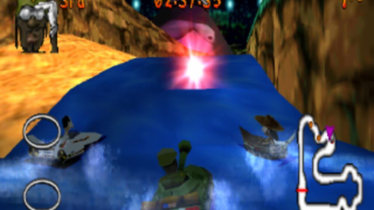 Renegade Racers, a watercraft racing game, has three game modes including arcade, quick race and high score. The modes are further broken down into eight race modes of varying types. In Battle Race, you blast opponents during the race while Check Point Challenge requires reaching checkpoints within pre-set parameters. Other self-explanatory races include Smash & Grab, Treasure Hunt, Head-to-Head and Dodgems. Rounding out the modes are the precision events Air Time and Drop Zone.